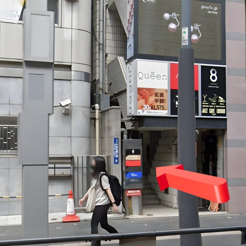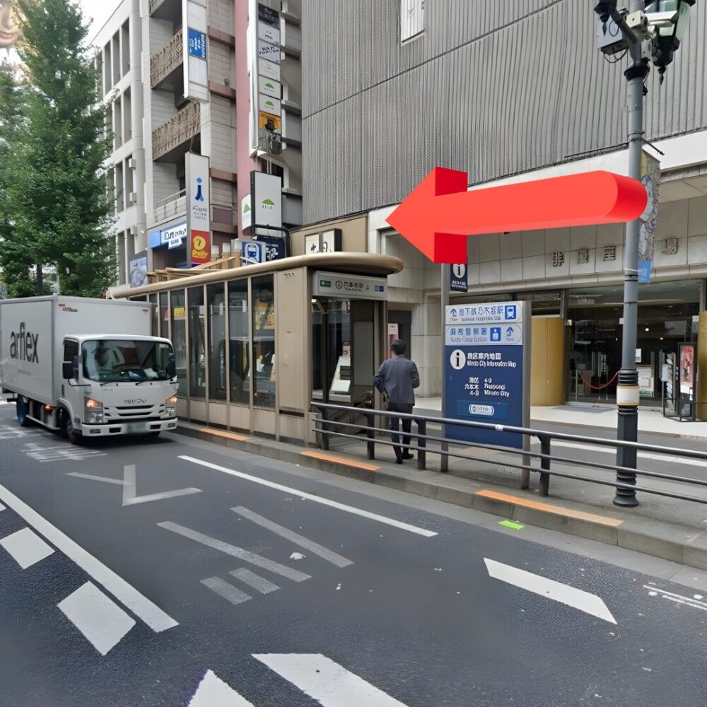 大江戸線「六本木駅」6番出口を出て左後方、デイリーヤマザキの方へ進む