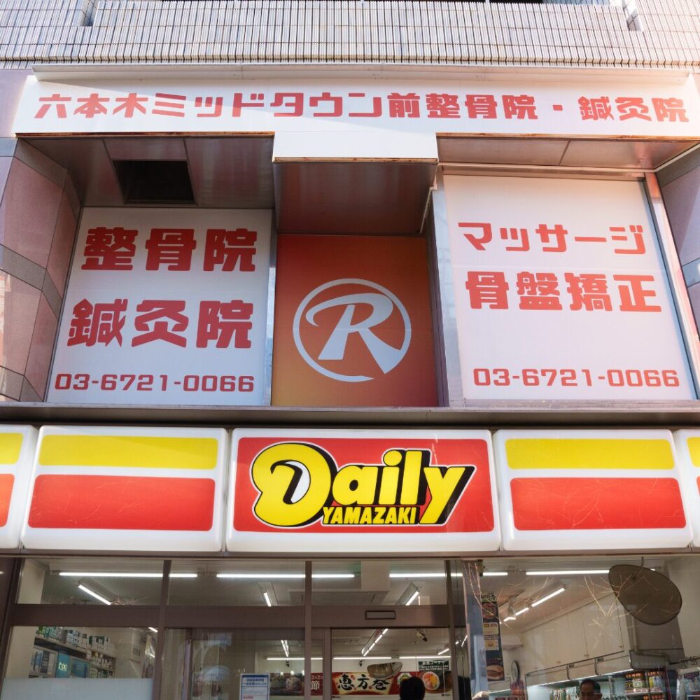 デイリーヤマザキの2階に六本木ミッドタウン前整骨院・鍼灸院があります